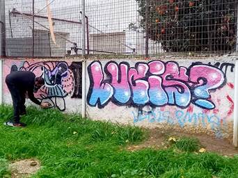 35: Ναι, αυτό το ρολό το κάναμε το 2017. Τότε το ναζί παρεάκι είχε ήδη μισοδιαλυθεί και εδώ δεν άραζε πια κανείς. Ούτε κι εμείς βέβαια. Μας έβγαζε ακόμη κακά vibes το μέρος. Ενώ τώρα…. Κοίτα πόσο ωραίο φαίνεται, που έχει αρχίσει να γεμίζει γκραφίτια!