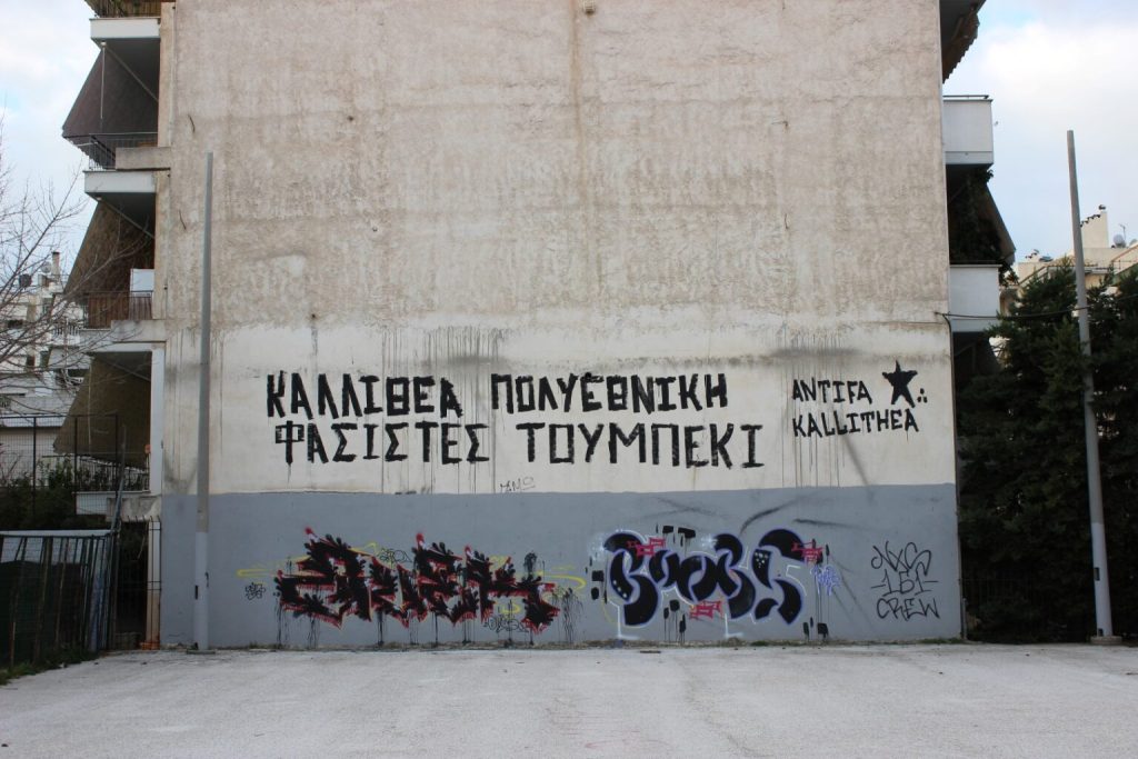 21: Πάντως αυτό που περιγράφεις ως υπόκωφη μάχη με τους ναζί στους τοίχους, από το ’13 και μετά άλλαξε μορφή. Εγώ δηλαδή τότε ήμουν μικρός και δεν το θυμάμαι καλά. Αλλά σίγουρα από το ’15-‘16 και μετά που θυμάμαι τη γειτονιά, οι ναζί μπορεί να υπήρχαν ακόμα, αλλά περιορίζονταν στο να πειράζουν όποτε μπορούσαν τα αντιφά κομμάτια. Δεν είχαν κανένα σημείο –ούτε καν ένα παρκάκι μόνο – στο οποίο να φαίνεται πως κάνουν κουμάντο. Δηλαδή, να στο πω κι αλλιώς εγώ το πάρκο που είμαστε τώρα το γνώρισα έτσι. Και απλώς θυμάμαι τους ναζί να έρχονται μια-δυο φορές και να πειράζουν το κομμάτι και μετά από δυο μέρες αυτό να είναι ως δια μαγείας ξανά φρεσκαρισμένο!
