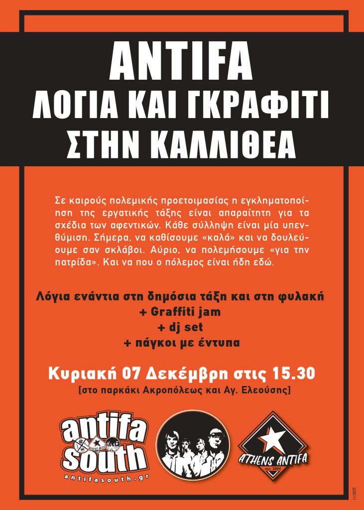 σχέδια των αφεντικών. Κάθε σύλληψη είναι µία υπενθύµιση. Σήµερα, να καθίσουµε «καλά» και να δουλεύουµε σαν σκλάβοι. Αύριο, να πολεµήσουµε «για την πατρίδα». Και να που ο πόλεµος είναι ήδη εδώ.