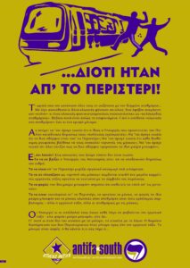 Η προκήρυξη αυτή μοιράστηκε παράλληλα με τη διαδήλωση του antifa South στην Καλλιθέα τον Δεκέμβρη του 2020. Αυτή η διαδήλωση,