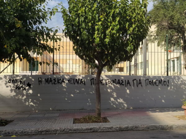 Η δυστοπία στην οποία εξελίσσεται η καθημερινότητά μας δεν είναι ανεξήγητη, ούτε οφείλεται στην «ανικανότητα» του ελληνικού κράτους. Με αφορμή τη διαχείριση του ιού, όλα τα κράτη προσπαθούν να ελέγξουν την κρίση που έχει ξεσπάσει εδώ και χρόνια και που όλο και βαθαίνει, να διασώσουν το καθένα ό,τι μπορεί, να διαπραγματευτούν με τους ανταγωνιστές τους στο εξωτερικό, και να κρατήσουν πειθαρχημένο το εσωτερικό τους, δηλαδή την εργατική τους τάξη. Η υποχρεωτική μασκοφορία στις δουλειές, τα μέσα μεταφοράς και τα σχολεία είναι ένας τέτοιος τρόπος πειθάρχησης. Το ίδιο και η απαγόρευση οποιασδήποτε γνώμης είναι διαφορετική από την κρατική. Το ίδιο και οι μπάτσοι που μας διώχνουν από τα μέρη που αράζουμε με το έτσι θέλω, και οι ρουφιάνοι τους που θέλουν να έχουν λόγο σε ό,τι κάνουμε.
